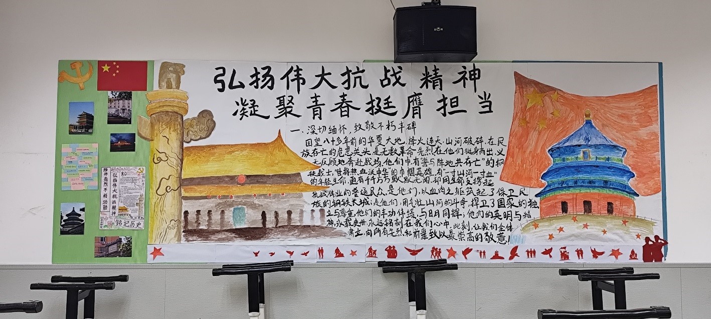 为深切缅怀革命先烈,传承和弘扬伟大的抗战精神,激励我校广大青年学生肩负时代使命、挺膺担当,校团委组织全校开展了以“弘扬伟大抗战精神 凝聚青春挺膺担当”为主题的板报展示活动。本次活动将爱国主义教育与职业教育特色深度融合,得到了各班级的积极响应和广泛参与。