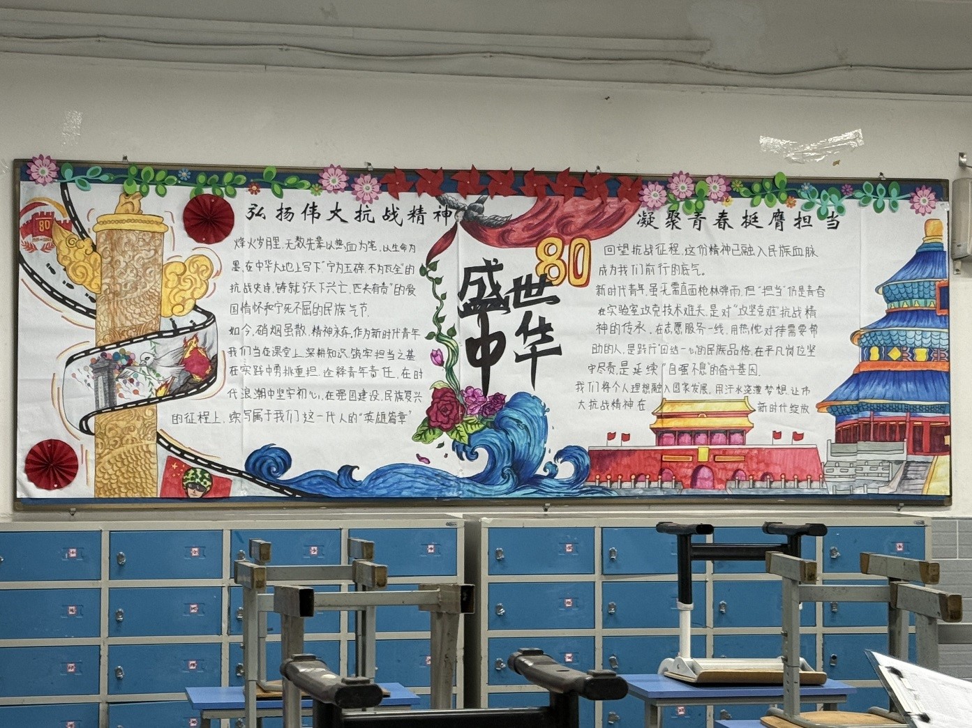 活动期间,各班级紧紧围绕主题,巧妙构思,精心设计,创作出了一幅幅主题鲜明、内容丰富、设计新颖的板报作品。同学们在回顾抗战历史、讴歌英雄事迹、阐释抗战精神内涵的同时,更注重结合自身专业特点,将爱国情怀与职业理想、专业技能紧密融合,展现了新时代职教学子独特的视角与风采。这些板报作品不仅仅是一堂堂生动的爱国主义教育课,更是一次次职业精神与专业技能的集中展示。