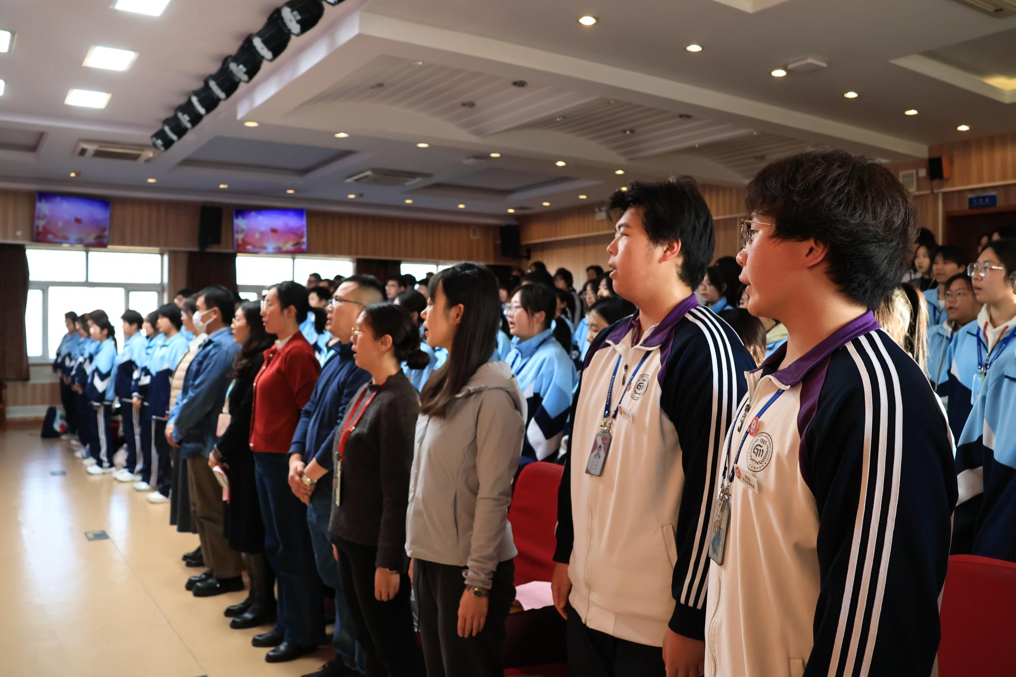 党的二十届四中全会擘画了“十五五”发展宏伟蓝图,为青年一代锚定了奋进航向。为加强我校共青团组织建设,激励广大青年学生坚定理想信念,校团委于11月19日组织125名2025年度新发展团员进行了庄严而富有意义的入团仪式。校党委委员、德育副校长杨明远、党群工作部主任刘月远、思政文体部主任于波、团委书记吴丹和各年级班主任代表等10余位老师亲临现场,共同见证这一光荣而神圣的时刻。