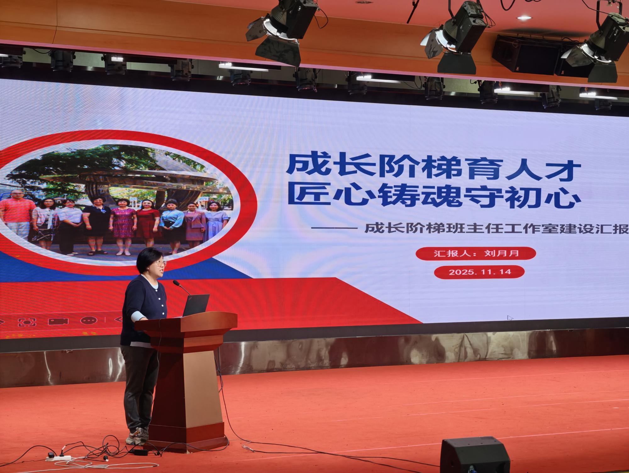 工作室主持人刘月月老师代表工作室做了题为《成长阶梯育人才匠心铸魂守初心》的主题汇报。汇报重点展示了工作室“一线两翼四维”建设模式的构建成果。在完善的制度机制保障下,工作室通过培训赋能、主题班会实践、班主任技能大赛、教科研攻坚及主题沙龙研讨等多元途径推进模式落地,最终实现学生全面成长与教师专业发展的双向提升,取得了显著成效。