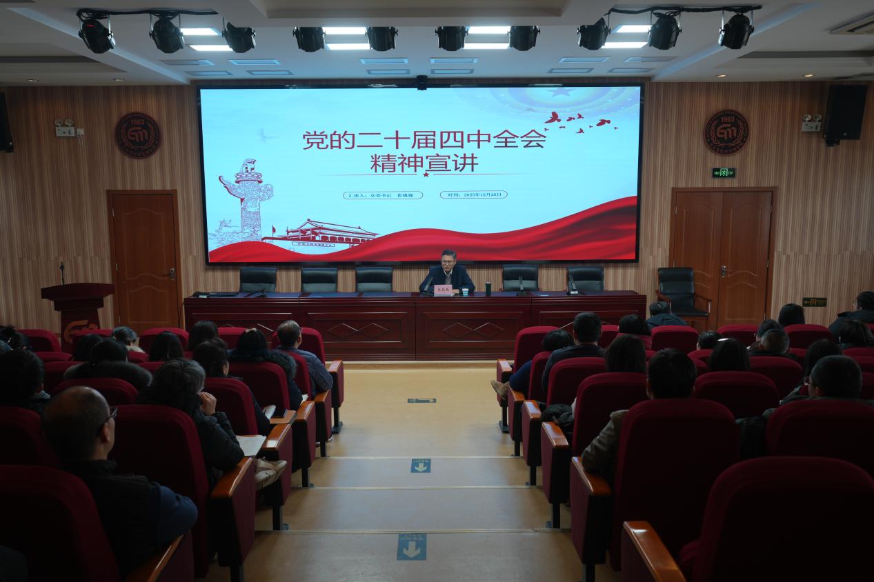 为深入学习宣传党的二十届四中全会精神,12月26日下午,学校党委在东六楼报告厅召开全校党员大会,党委书记崔巍巍作主题宣讲,全面解读全会精神,谋划学校未来发展蓝图。校领导班子成员、全体中层干部、全体党员、积极分子及发展对象、党外人士、青年教职工参加了会议。