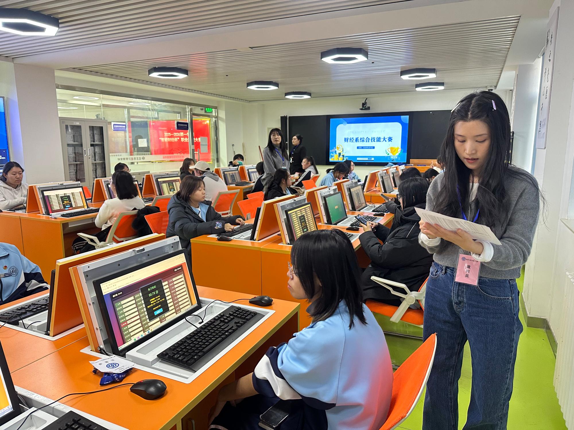 为深入贯彻“以赛促学、以赛促教、以赛促改”的教育理念,切实提升学生专业实践能力与职业综合素养,我校财经系于2026年1月7日至9日,成功举办了首届“智能财经杯”校内职业技能大赛。本次大赛规模盛大,共计吸引220人次学生踊跃参与,在严谨而热烈的竞技氛围中,充分展现了财经学子的扎实功底与昂扬风貌。
