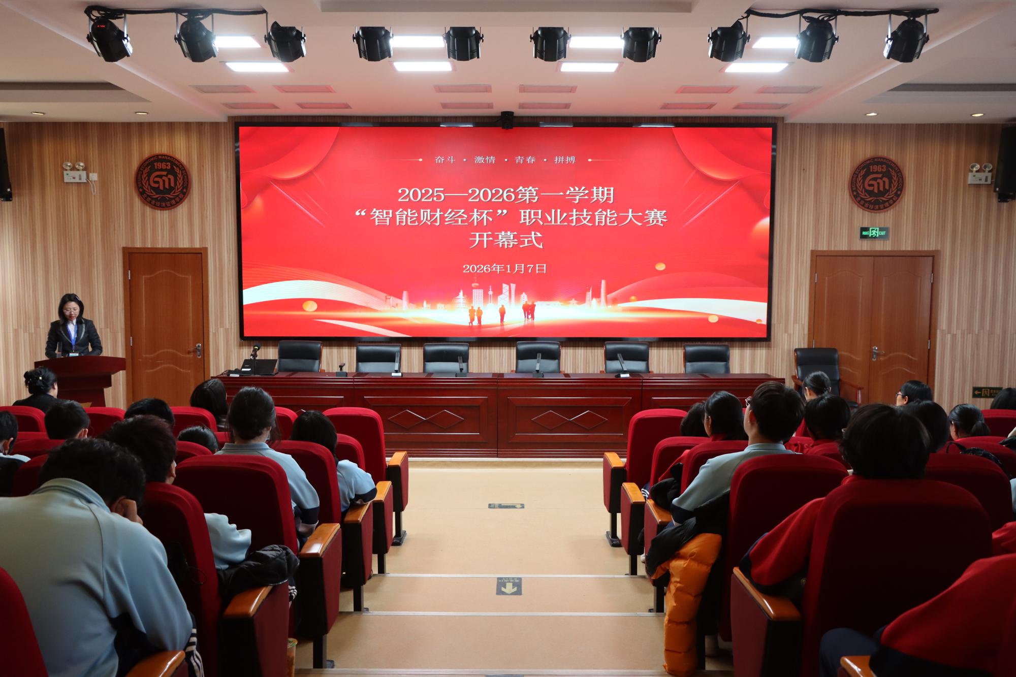 1月7日下午,大赛在东楼六层阶梯教室举行了简短而隆重的开赛仪式。教务处龙九清主任、王国艳副主任应邀参加了本次开幕式,仪式上,财经系主任初英梅阐述了大赛对于推动专业教学改革、促进学生成长成才的重要意义,勉励全体参赛选手沉着应战、赛出水平。学生代表亦郑重宣誓,将恪守纪律、专注比拼,展现最佳状态。